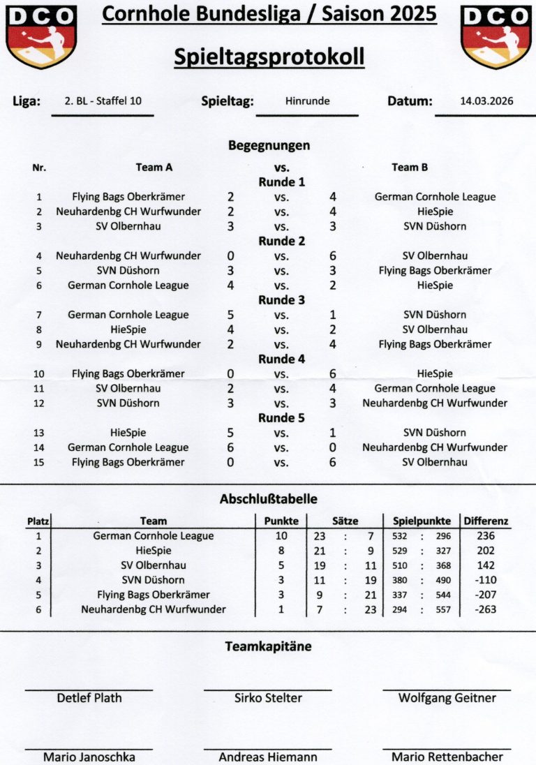 Ergebnisse Hinrunde
